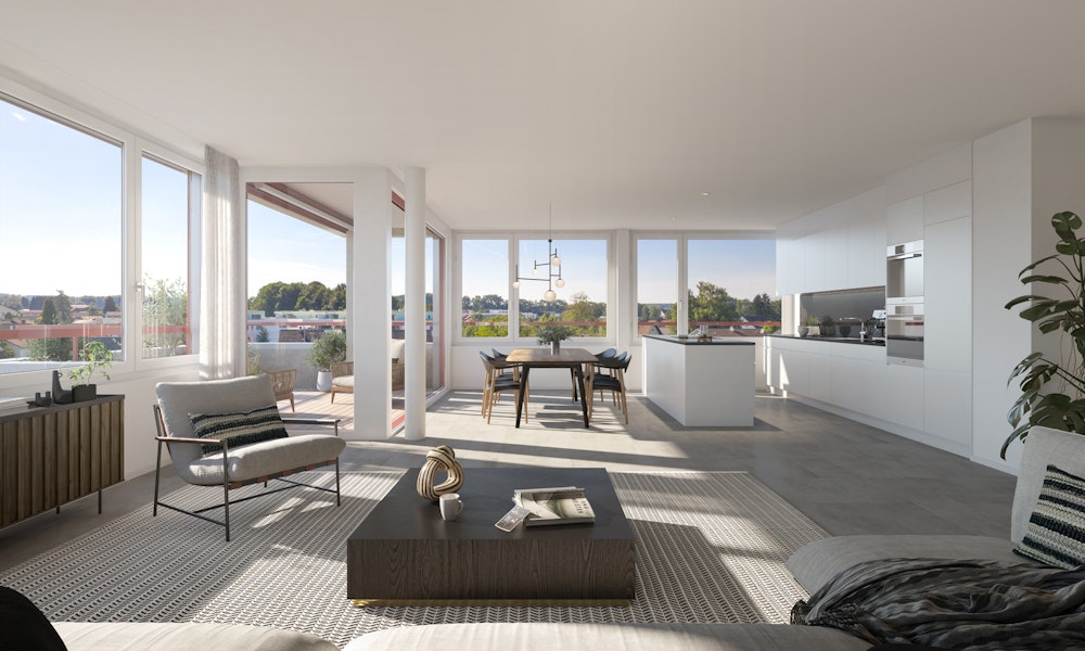 Auf dem Grundstück am Aachweg stehen Ihnen alle Möglichkeiten offen, denn die Überbauung vereint Stadtnähe – beispielsweise nach Romanshorn oder Arbon – und Landliebe. So müssen Sie sich nicht festlegen, sondern leben nach Lust und Laune, drinnen oder draussen, im Grünen und doch in praktischer Nähe zum Alltäglichen. Gleichzeitig finden Sie hier Ihren persönlichen Rückzugsort – einen sicheren Hafen für Sie und Ihre Zukunft. Ganz egal, was Ihre Pläne sind: allein, zu zweit, zu dritt … Hier bekommen Ihre Träume ein Zuhause.